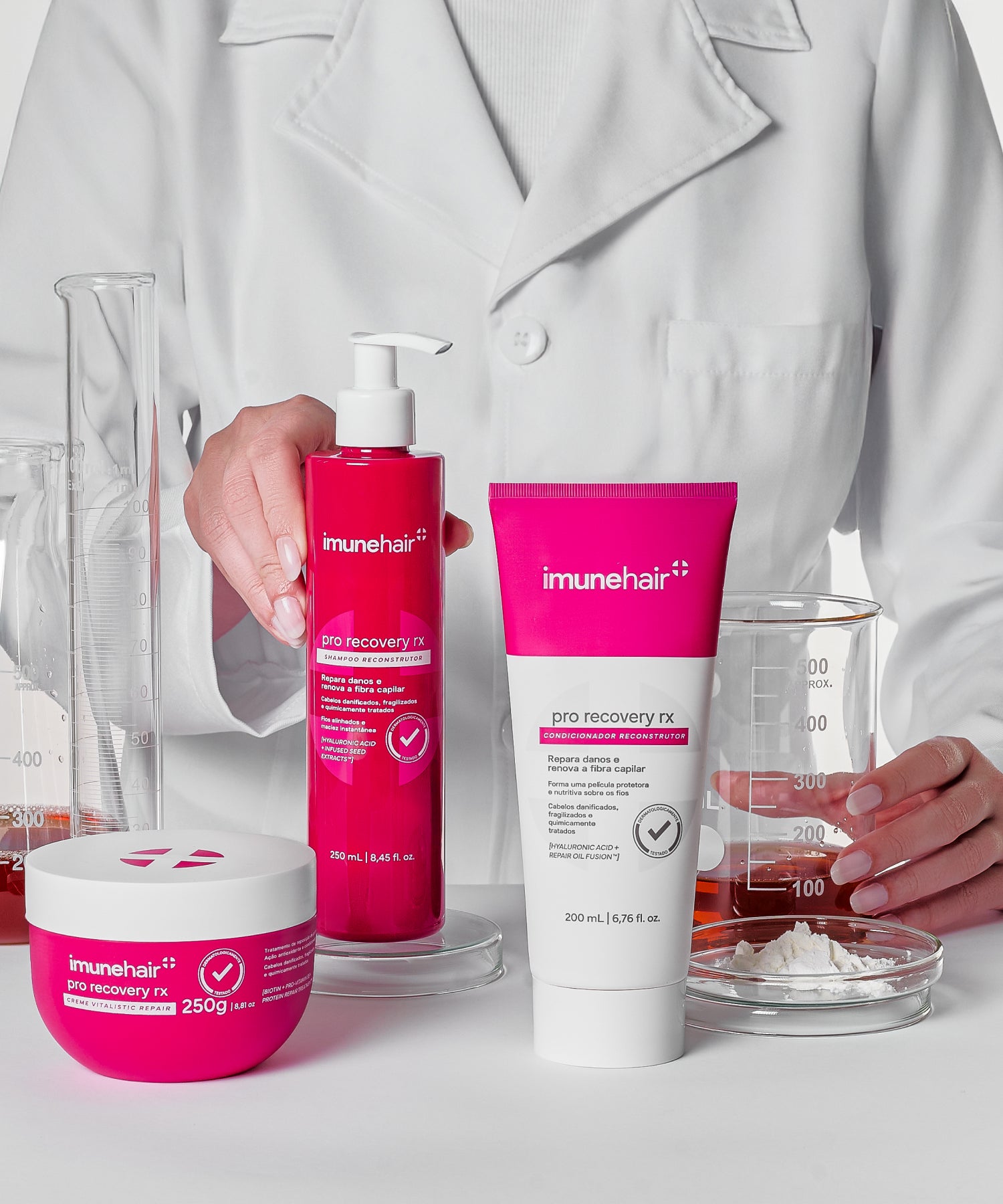 Reconstrução e força para fios danificados. A linha Pro Recovery RX ajuda a reduzir a quebra, melhora o alinhamento dos fios e devolve brilho, maciez e resistência à fibra capilar.