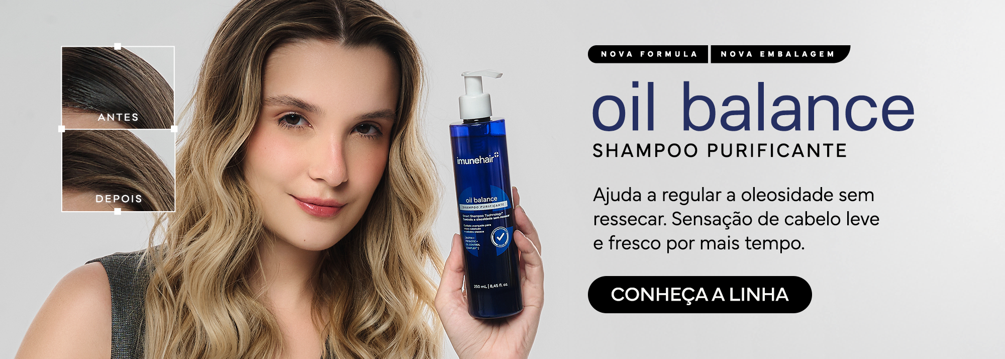 Limpeza refrescante e controle da oleosidade sem ressecar. Com ativos que contribuem para o equilíbrio a microbiota e fortalecem os fios, o Oil Balance promove leveza e saúde capilar duradoura.